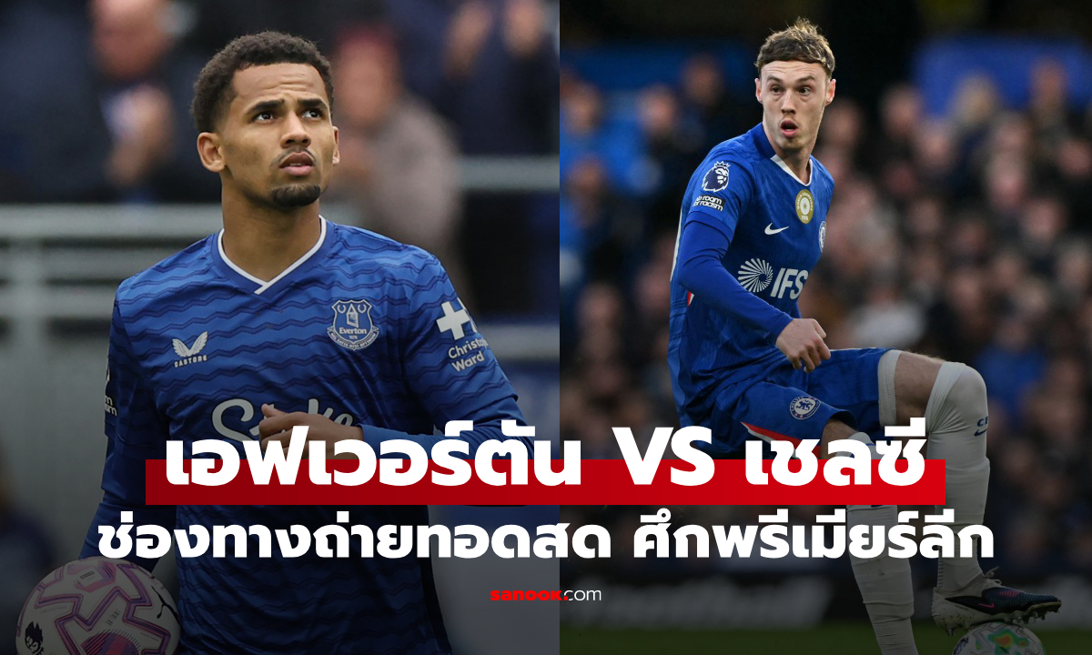 เตรียมตัวให้พร้อมสำหรับฟุตบอลพรีเมียร์ลีก อังกฤษ 2025/26 สัปดาห์ที่ 31 วันนี้! ดูบอลสด เอฟเวอร์ตัน พบ เชลซี ชมการถ่ายทอดสดส่งตรงจากสนามกูดิสัน พาร์ก วันเสาร์ที่ 21 มีนาคม 2569 เวลา 00:30 น. (เข้าสู่เช้ามืดวันอาทิตย์ที่ 22 มี.ค. 69)