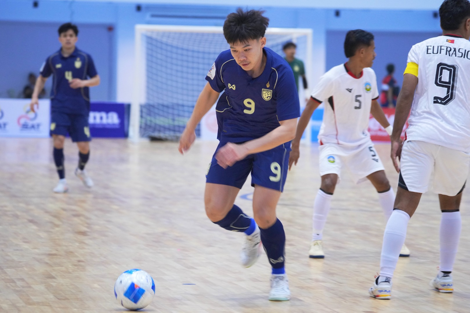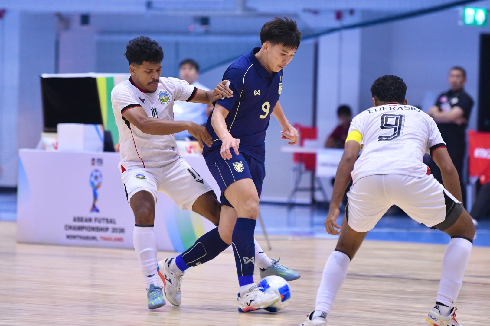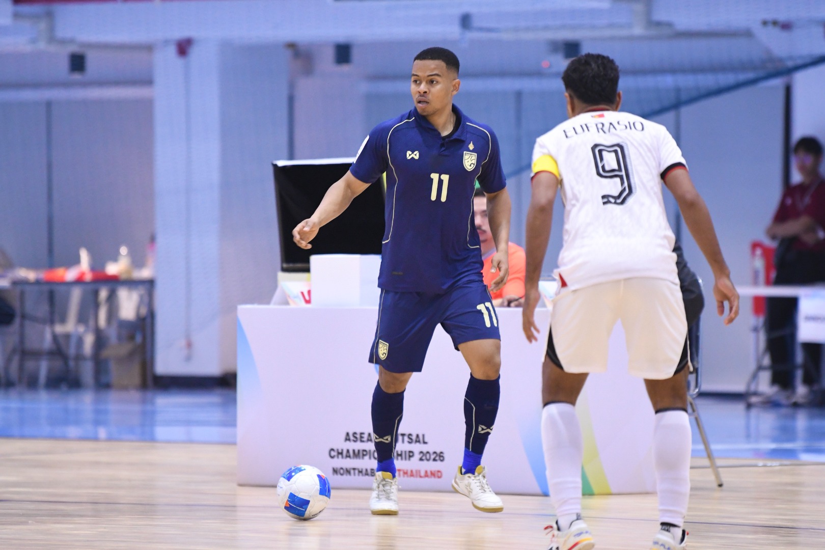 ประเดิมคว้าชัย! "โต๊ะเล็กไทย" รัวยิง ติมอร์ เลสเต 4-1 ศึกฟุตซอลชิงแชมป์อาเซียน 2026การแข่งขันฟุตซอลชิงแชมป์อาเซียน 2026 กลุ่มเอ ทีมชาติไทย ลงสนามพบกับ ติมอร์ เลสเต ทีมอันดับ 103 ของโลก ที่ ยิมเนเซียม อบจ.นนทบุรี เมื่อวันที่ 6 เมษายน 2569