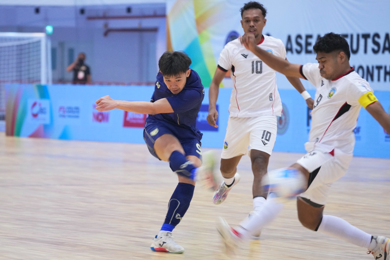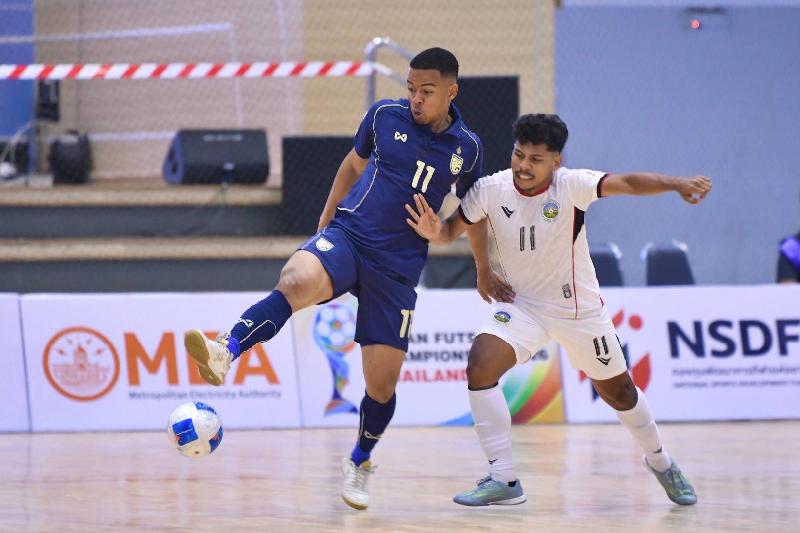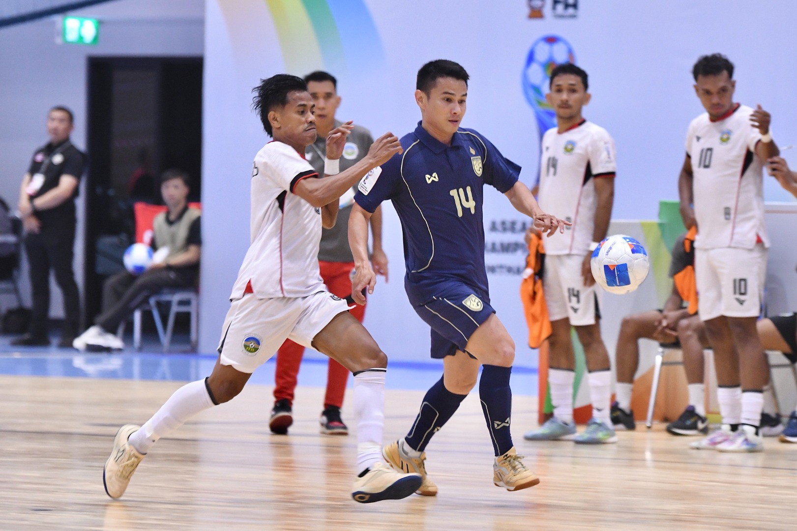 ประเดิมคว้าชัย! "โต๊ะเล็กไทย" รัวยิง ติมอร์ เลสเต 4-1 ศึกฟุตซอลชิงแชมป์อาเซียน 2026การแข่งขันฟุตซอลชิงแชมป์อาเซียน 2026 กลุ่มเอ ทีมชาติไทย ลงสนามพบกับ ติมอร์ เลสเต ทีมอันดับ 103 ของโลก ที่ ยิมเนเซียม อบจ.นนทบุรี เมื่อวันที่ 6 เมษายน 2569