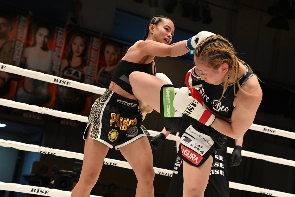 โดย นักชกสาวไทยวัย 24 ปี ขึ้นสังเวียนเป็นคู่เอกของรายการ กติกาคิกบ็อกซิ่ง 48 กก. พบกับ เมอิ มิยาโมโตะ กำปั้นเจ้าถิ่นวัย 28 ปี ดีกรีแชมป์ รุ่นมินิฟลายเวต RISE QUEEN ครั้งที่ 4