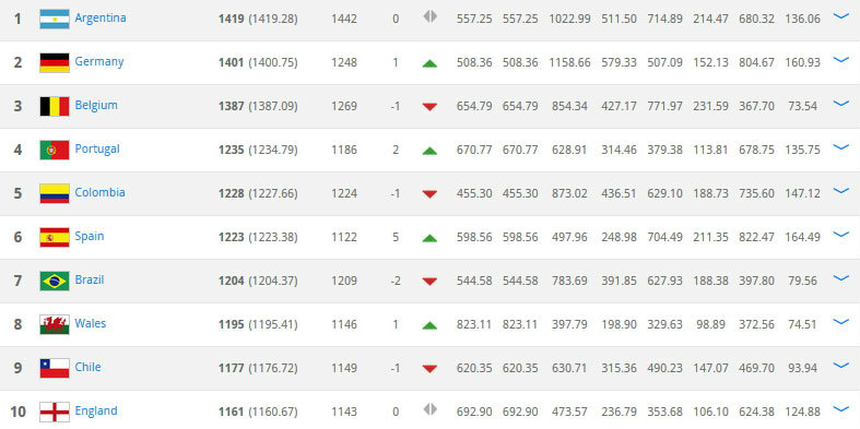 มิใช่เพียงคนไทยที่สงสัย หากแต่หลายๆอันดับล้วนชวนให้เลิกคิ้ว เมื่อทีมที่ไม่เคยประสบความสำเร็จในระดับนานาชาติอย่าง เบลเยี่ยม ยึดหัวหาดทีมอันดับ 3 ของโลก!!!! (อันที่จริงก่อนหน้านี้อยู่ในอันดับ 2 เหนือแชมป์โลกทีมล่าสุดอย่าง เยอรมัน ด้วยซ้ำ) หรือ โปรตุเกส ของยอด ซุป’ตาร์ 500 ประตู คริสเตียโน่ โรนัลโด้ หรือจะเป็นทีมชาติเวลส์ ที่อยู่ในอันดับ 8 เหนือ อังกฤษในอันดับ 10