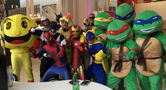 อาทิ แดนนี่ ดริงค์วอเตอร์, แม็ตตี้ เจมส์, แอนดี้ คิงส์, เบน ฮาเมอร์ แต่งตัวเป็นเต่านินจา โรเบิร์ต ฮูธ แต่งตัวเป็นแบทแมน