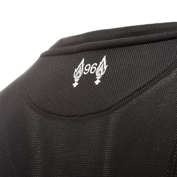 ขณะที่ด้านหลังคอเสื้อจะมีตัวเลข 96 อยู่ระหว่างคบเพลิง Eternal Flame หรือ ไฟที่ถูกจุดขึ้นเพื่อรำลึกถึงผู้เสียชีวิตจากโศกนาฏกรรมฮิลส์โบโรห์ทั้ง 96 รายเมื่อ 15 เมษายน 1989