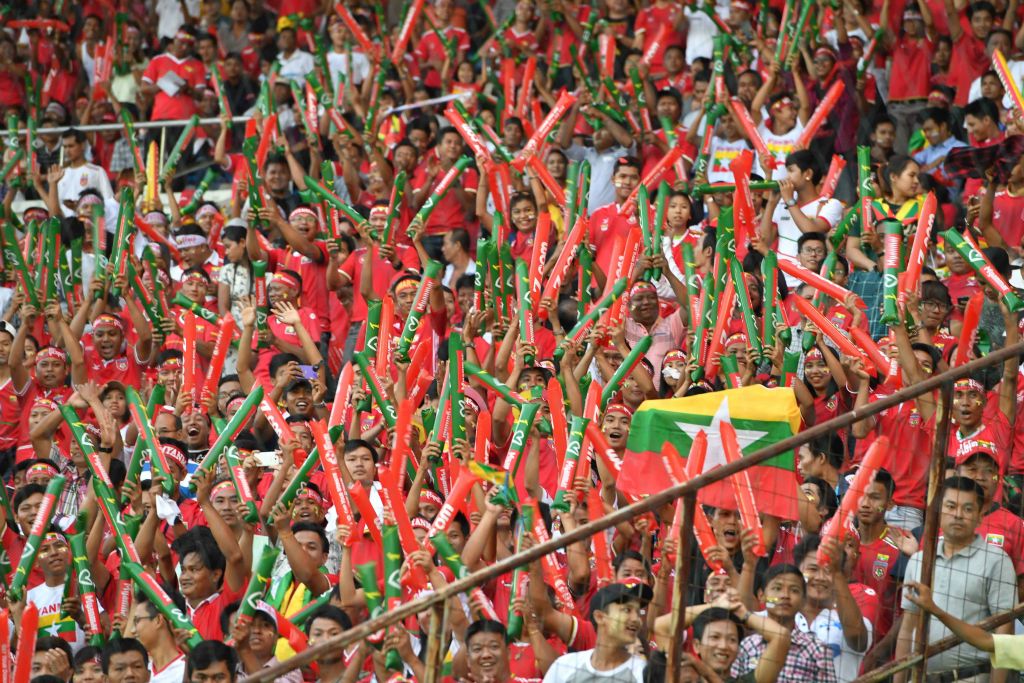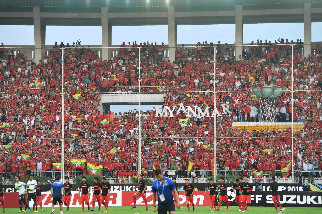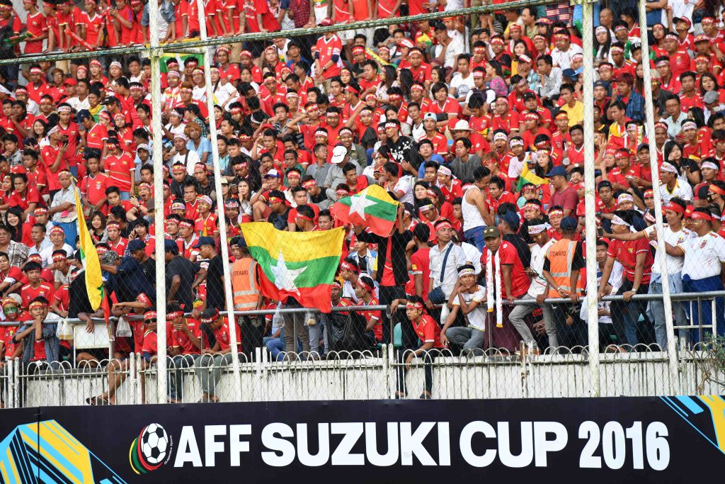 ภาพบรรยากาศแฟนบอลในเกมที่ "เจ้าภาพ" เมียนมา เปิดสนาม ธุวันนา สเตเดี้ยม รับมือ "แข้งช้างศึก" ทีมชาติไทย ในการแข่งขัน ฟุตบอลชิงแชมป์อาเซียน "เอเอฟเอฟ ซูซูกิคัพ 2016" รอบรองชนะเลิศ นัดแรก เมื่อวันอาทิตย์ที่ 4 ธันวาคม ที่ผ่านมา