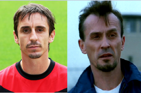 แกรี่ เนวิลล์ อดีตแบ็กขวาแมนเชสเตอร์ ยูไนเต็ด กับ โรเบิร์ต เน็ปเปอร์ หรือ "ที-แบ็ก" อาชญากรโรคจิตจากเรื่อง Prison Break