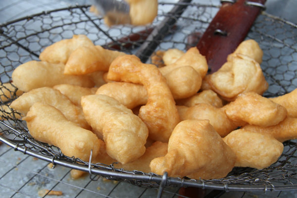 ปาท่องโก๋ไร้คู่ ที่แป้งเนื้อนุ่ม บางเบา กินแล้วแทบละลายในปาก ก็เลื่องลือความอร่อยไม่แพ้กัน หรือจะกินคู่กับสังขยาที่วางขายเคียงกันอยู่หน้าร้อน ก็เด็ดเข้ากันดีจริงๆ