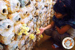 หลังจากฟังข้อมูลน่ารู้เกี่ยวกับเห็ดจากเจ้าหน้าที่แล้ว ก็ได้เวลาปฏิบัติภารกิจกันละ อยากกินเห็ดชนิดไหน หิ้วตะกร้าไปช็อปได้เลย ทางฟาร์มจะคิดราคาตามชนิดของเห็ดที่เราเก็บมาถ้าอยากให้ตะกร้ามีสีสวยงามต้องเก็บเห็ดนางนวลที่ดอกเห็ดมีสีชมพู หรือจะแซมด้วยสีทองของเห็ดนางรมทอง พร้อมเพิ่มความน่ารักด้วยเห็ดนางฟ้าภูฏานก็ดูเก๋ไก๋ไม่น้อย บางคนในกลุ่มเราตั้งใจจะหิ้วตะกร้าเห็ดกลับไปเป็นของฝาก เพราะนอกจากเป็นตะกร้าเพื่อสุขภาพแล้ว สีสันยังกินขาดอีกด้วยส่วนเห็ดตับเต่านั้น ทางฟาร์มไม่มีให้เก็บ แต่เขาปลูกไว้ให้นักท่องเที่ยวได้เห็นถึงความมหึมาของเจ้าเห็ดนี้จนได้ชื่อว่าเห็ดตีนแรด หากมาในช่วงที่เห็ดกำลังโตพอดีก็อาจได้ชิมกันเอร็ดอร่อยที่นี่มีเห็ดให้คุณได้เก็บตลอดปีแต่ถ้ามาเที่ยวในช่วงเทศกาลเห็ดอาจมีจำนวนไม่พอกับความต้องการและขอย้ำว่าคุณต้องเก็บเห็ดตามวิธีที่เจ้าหน้าที่สอนอย่างเคร่งครัดเพื่อไม่ให้เกิดความเสียหายแก่เห็ดที่เหลืออีกทั้งก่อนเข้าบ้านเห็ดแต่ละหลังอย่าลืมล้างเท้าด้วยน้ำยาฆ่าเชื้อและสวมรองเท้าที่ทางฟาร์มจัดไว้ให้เพราะเห็ดแต่ละชนิดบอบบางมากต้องทะนุถนอมเป็นพิเศษ
