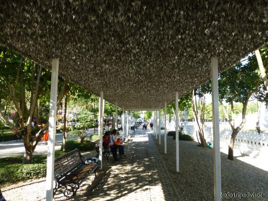 Nessa Parte dorada onde fica o banheiro e lojas e exposições de quadros