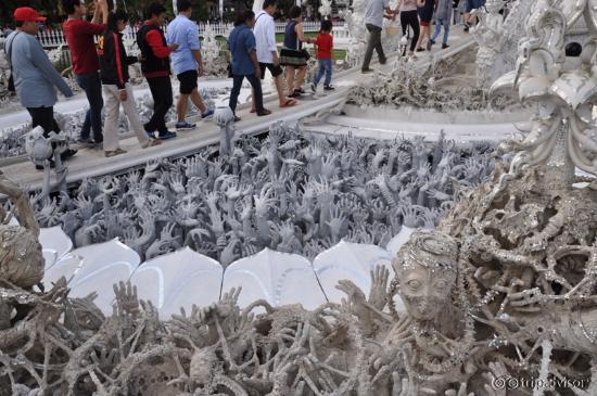 תאילנד צ'אנג ראי המקדש הלבן .ליפני שמגיעים לגן עדן, עוברים על גשר הלידה, ובדרך עוברים בתוך יער ש