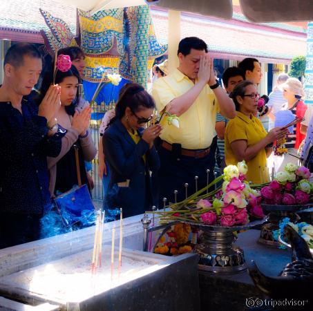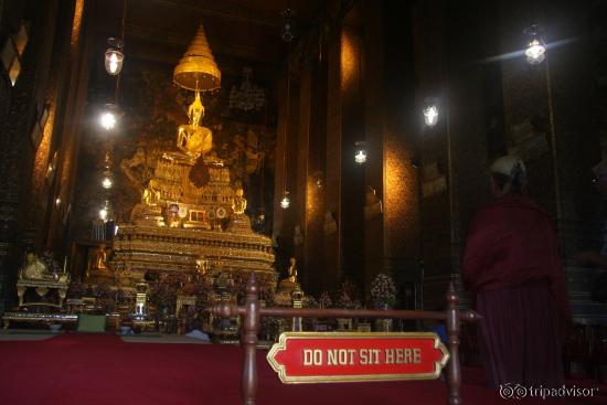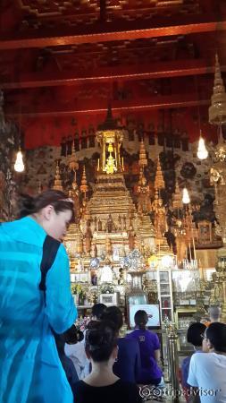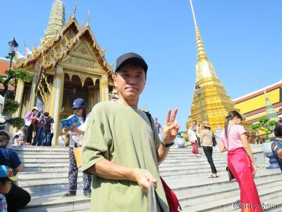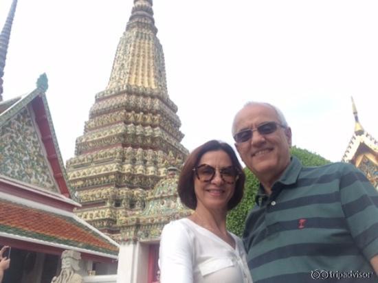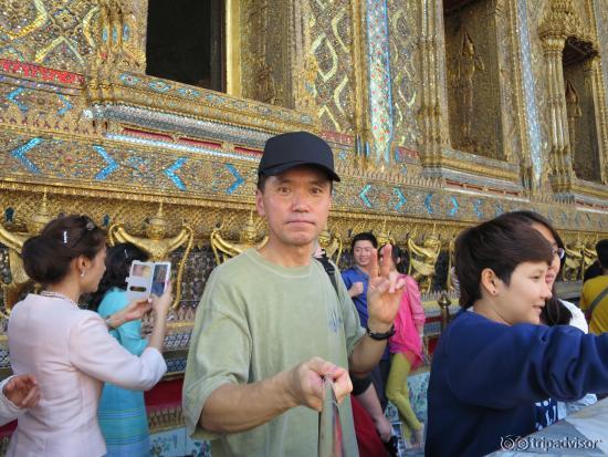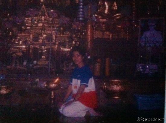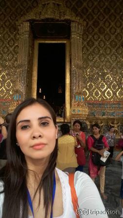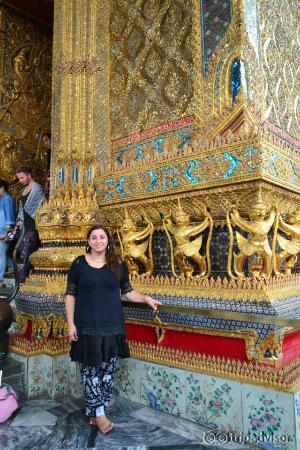 Eu com o Buda de Esmeralda que tem vestido com roupa feita a fio de ouro.