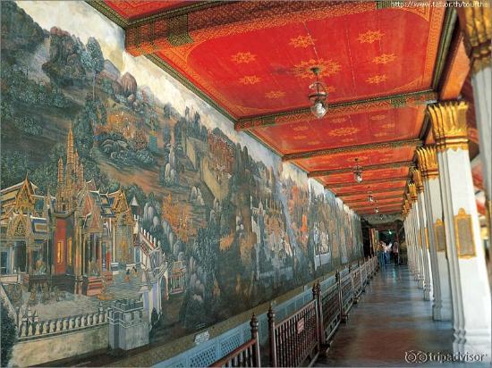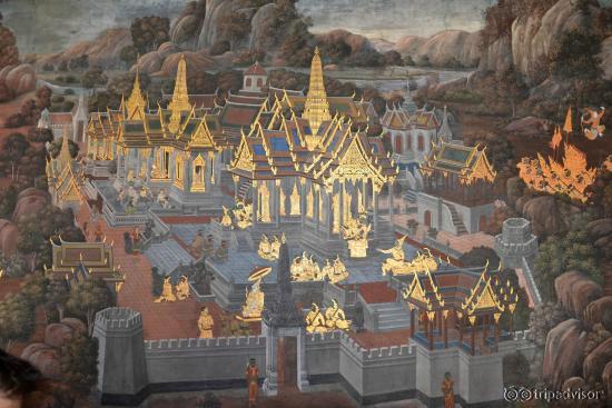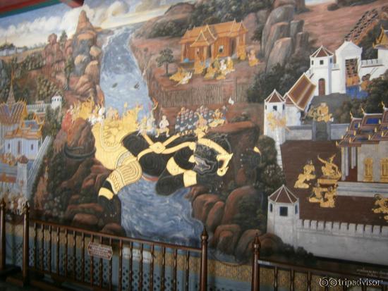 Bangkok : Wat Phra Kaew - Fresque murale.