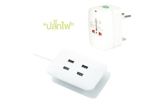 3. "ปลั๊กแปลงไฟ+ปลั๊กพ่วง" เอาปลั๊กแปลงไฟไปตัวเดียวอาจจะไม่พอ แนะนำให้หาปลั๊กพ่วงไปด้วย เนื่องจากสิ่งที่เราต้องใช้ประโยชน์จากปลั๊กไฟนั้นมีหลายอย่าง อาทิ โทรศัพท์มือถือ, กล้องถ่ายรูป, คอมพิวเตอร์แลปท็อป ฯลฯ