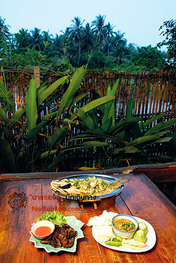 3. เรือนลออ (ทางเข้าวัดดาวโด่ง ถนนสายแหลมเตย-ปากลัด อ. เมือง เปิด 10.00-22.00 น. โทร. 0-3471-8599, 08-4000-9661) เป็นร้านที่คนแม่กลองต่างแนะนำว่า อาหารอร่อยแต่ราคาไม่แพง ทั้งบรรยากาศร้านก็ร่มรื่นโอ่โถง มีที่นั่งให้เลือกรับลมสบายๆ ด้านนอก หรือในห้องแอร์เย็นเจี๊ยบแบบส่วนตัว เมนูเด็ดที่สั่งกันแทบทุกโต๊ะคือปลากะพงหลงน้ำ รสชาติคล้ายต้มข่าแต่เข้มข้นกว่ามาก เพราะเขาใช้หัวกะทิเคี่ยวกับน้ำตาลมะพร้าว ใส่น้ำมะขามเปียก เติมน้ำปลาหน่อย เคี่ยวจนงวด ราดพอท่วมตัวปลากะพงที่ทอดจนเหลือง เสิร์ฟมาในหม้อไฟรูปปลาเพื่อให้กะทิแตกมัน รสชาติกลมกล่อมหากชอบรสจัดให้สั่งแกงป่าพริกกะเหรี่ยงปลากรายรสเข้มข้นถึงเครื่องแกง เผ็ดร้อนชนิดน้ำหูน้ำตาไหล ต่อด้วยน้ำพริกไข่ปูรสจัด แล้วเบรกความเผ็ดด้วยเมนูปลาเนื้อดำแดดเดียว หรือปลากระเบนแดดเดียวทอด เนื้อปลาออกรสหวานนิดๆ เคี้ยวเพลินเพราะไม่มีกลิ่นคาว