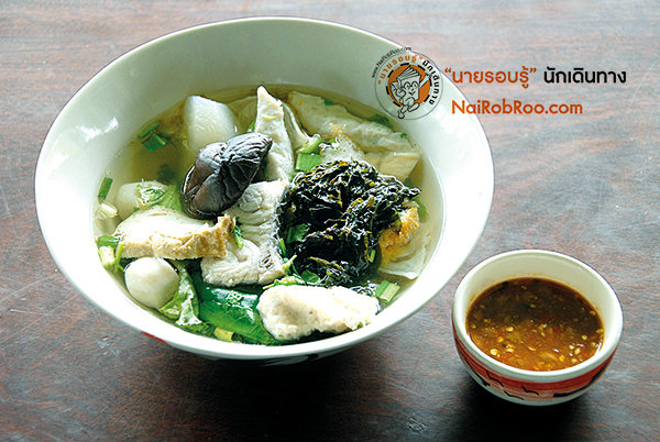 4. ก๋วยเตี๋ยวปลาอัมพวา (ถนนสายแม่กลอง-ดำเนินสะดวก อ. บางคนที เปิด 09.00-14.30 น. หยุดวันอังคาร โทร. 08-5909-9635)ร้านนี้หาไม่ยาก เพราะมีหลักกิโลฯ ยักษ์เขียนชื่อ "ก๋วยเตี๋ยวปลาอัมพวา" ตั้งโดดเด่นอยู่หน้าร้าน ส่วนในร้านโปร่งโล่งน่านั่ง มีโต๊ะเก้าอี้ไม้ให้เลือกนั่งสบายๆ หรือจะเลือกนั่งเสื่อห้อยขากินก๋วยเตี๋ยวเพลินๆ ก็ย่อมได้ คนที่ชอบก๋วยเตี๋ยวปลามาร้านนี้ไม่ผิดหวัง จะสั่งเส้นเล็ก เส้นหมี่ หรือบะหมี่ ก็ล้วนอร่อยครบเครื่อง เพราะเขาใส่เครื่องเคราไม่อั้น ทั้งปลาโชกุนลวกเนื้อแน่น ลูกชิ้นปลาแบบยาวแบบกลม เกี๊ยวปลาตัวอ้วน ปลาเด้ง และฮื่อก๊วย ที่สั่งตรงจากตลาดปลาแม่กลองสดใหม่ทุกเช้า