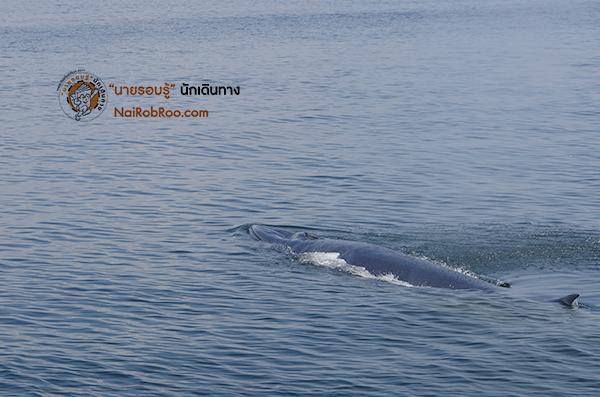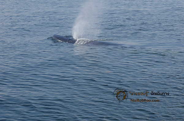 แต่เมื่อเรือแล่นเข้าไปอีกสักพักพวกเราก็ได้ยินเสียงพ่นน้ำดัง "ฟู่" วาฬบรูด้าขนาดยาวกว่า 12 เมตร ขึ้นมาหายใจและอวดครีบหลังให้ทุกๆคนได้ชม ความรู้สึกครั้งแรกที่เห็นวาฬบรูด้ากับตาตัวเอง เป็นสิ่งที่บอกออกมาเป็นคำพูดไม่ถูกจริงๆ มันทั้งตื่นเต้นและตกใจในคราวเดียวกัน
