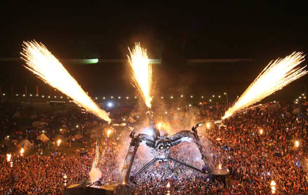 เวทีหุ่นยนต์แมงมุมยักษ์สูงเท่าตึก 5 ชั้น พร้อมเอฟเฟ็กต์พ่นไฟและแสงสีเสียงตระการตา กับ DJ ชั้นนำระดับโลก อย่าง The Bloody Beetroots (SBCR DJ Set) ; Roni Size + Dynamite MC ; SKisM ; Far Too Loud และอีกมากมาย พร้อมโชว์พิเศษ Lords of Lightning เทพสายฟ้าพลังไฟ 4 ล้านโวลต์ สุดยอดโปรดัคชั่นโชว์อลังการจากประเทศอังกฤษ