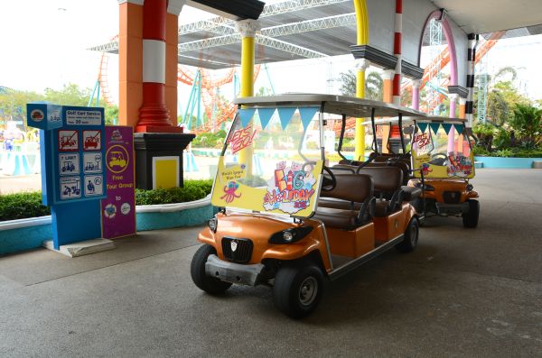 เนื่องจากไม่ได้มาสวนสยามนานมากก็กลัวจะหลงทางเลยขอใช้บริการรถกอล์ฟกันหน่อย ซึ่งจะขับไปส่งเราที่บริเวณสวนน้ำเลยทีเดียว