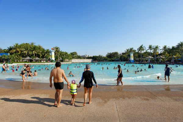 มาถึงแล้วสวนน้ำของเราคนเยอะมาก ส่วนใหญ่จะมากันแบบครอบครัว มีหลายโซนมากทั้งน้ำวน และทะเล-กรุงเทพฯ จำความได้ว่า ตอนเด็กจะชอบให้พ่อพามาสวนสยาม และเราก็จะชอบมาเล่นทะเลเทียม จะเอาห่วงยางมาด้วย พ่อก็จะเป็นคนประคองห่วงยางให้เราไม่จมน้ำ มันเป็นช่วงเวลาที่มีความสุขและอบอุ่นมากจริงๆ