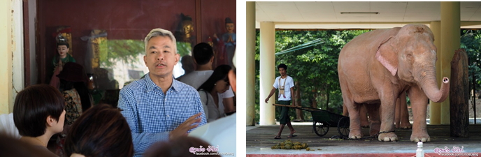 ตามหมายกำหนดการ เราจะต้องไปกินอาหารกลางวันที่ ภัตตาคาร Royal Garden แต่พอมีเวลาก็เลยเพิ่มโปรแกรมให้เราไปดู ช้างเผือก ของพม่ากันก่อนครับ ช้างเผือก มีคชลักษณะ 7 ประการ คือ ตาขาว เพดานขาว เล็บขาว ขนขาว พื้นหนังขาวหรือสีคล้ายหม้อใหม่ ขนหางขาว อัณฑโกศขาวหรือคล้ายสีหม้อใหม่ (สีชมพูแกมเทา)