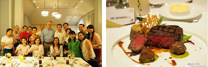 มื้อค่ำของคณะของเราได้รับเกียรติจาก คุณพิษณุ สุวรรณะชฎ เอกอัครราชทูตไทย ณ กรุงย่างกุ้ง เดินทางมาร่วมรับประทานอาหาร และทักทายคณะของเราอย่างเป็นกันเอง มื้อนี้ทาง AIS จัดให้อย่างเต็มที่ เป็น 4 full course dinner ทีเด็ดอยู่ที่ Tajima Wagyu Beef with Granishing (จานนี้เด็ดที่สุดเลยครับ เป็นเนื้อ Tajima ชั้นดี ความสุก ระดับ Medium จัดจานมาสวยงาม รสชาติก็ดีมากด้วยเช่นกัน) สำหรับคนที่ไม่กินเนื้อ ก็สามารถเลือกเป็นเมนูปลาแซลมอน หรือ ไก่ ได้เช่นกัน