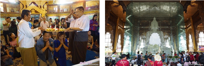 โปรแกรมแรกของวันนี้ เราเดินทางไปสักการะขอพร องค์เทพทันใจ ที่เชื่อกันว่าขอพรได้เร็วดั่งใจ พม่าเป็นดินแดนที่ผู้คนมีความศรัทธาในพระพุทธศาสนา แต่ก็มีความเชื่อเรื่องการบูชาเทพเทวาอารักษ์ จากนั้นเรามาชมพระเกศาธาตุที่ เจดีย์โบดาทาวน์ เล่ากันว่ามีพระสงฆ์แปดรูปอัญเชิญพระบรมสารีริกธาตุของพระพุทธองค์มาประดิษฐานไว้ที่นี่ มีนักท่องเที่ยวเข้าชมตลอดวัน