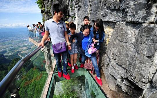 เสียวได้อีก! สะพานกระจก "ผานหลงหยา" บนหน้าผาสูง...เท่าฟ้าสะพานผานหลงหยาแห่งนี้ ถูกสร้างเลียบไปบนหน้าผาสูงของภูเขาเทียนเหมินในวนอุทยานจางยาเจี้ย ซึ่งตั้งอยู่ที่เมืองจางเจียเจี้ย มณฑลหูหนาน ประเทศจีน