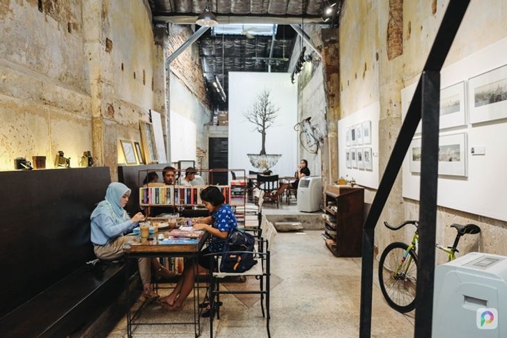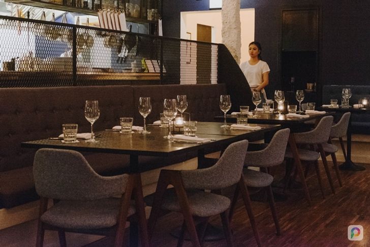ตัวร้านบรรยากาศเรียบง่ายคล้ายบ้านอิฐสีขาวและเพดานเฉียง แต่งร้านอย่างเท่ๆ ด้วยภาพเพ้นต์สีสด และเพิ่มความครึกครื้นให้กับร้านด้วยครัวเปิดและบาร์ค็อกเทลที่ด้านหน้าประตู