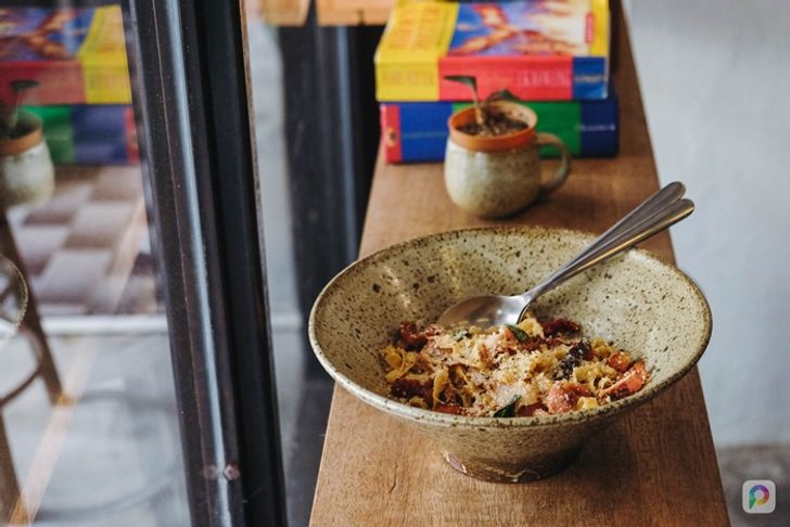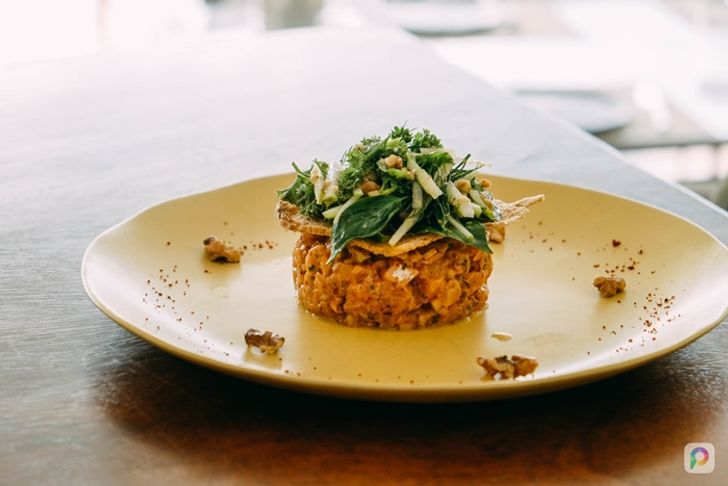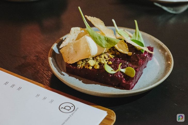 คนทานมังสวิรัติ ต้องลอง Beetroot Tartare (200 บาท) ที่เป็นเนื้อบีทรูทสับเนื้อแน่นๆ โปะครีมสดและขนมปังกรอบกับถั่วพิสตาชิโอ หรือลอง Cavatelli pasta (450 บาท) ที่ผัดกับหน่อไม้ฝรั่ง ถั่วแระและชีสบูราต้าจากจังหวัดกระบี่