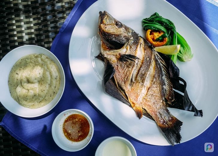 หรือลอง ปลากะพงแดงย่างทั้งตัว (690 บาท) มาคู่กับกับมันบดทรัฟเฟิล น้ำจิ้มซีฟู๊ดแซ่บๆ และซอสเนยกับเลมอนให้แบ่งกันทานได้หลายคน