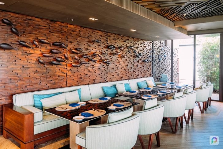 Seafood เป็นห้องอาหารที่มีทั้งพื้นที่แบบอินดอร์แอร์เย็นๆ และเอาท์ดอร์ริมหาด ที่เราสามารถลงไปนั่งทานบนหาดทรายใต้ต้นมะพร้าวกันแบบสบายอารมณ์ โดยเชฟพีท วาระศิริ ทองแถม ณ อยุธยา นำเอาสูตรของคุณย่า มาปรุงเสิร์ฟเป็นอาหารไทยรสชาติและเทคนิคการทำแบบดั้งเดิมที่เรียกว่า Mama’s Recipe เป็นเซ็ตเมนู (3,000 บาท/คน)