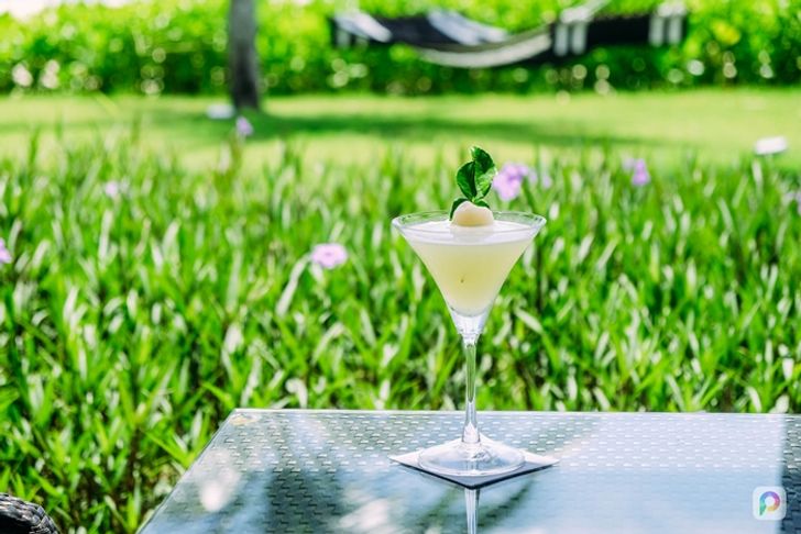 อย่าลืมสั่งดริ๊งก์ค็อกเทลเบาๆ อย่าง อีสาน (250 บาท) ที่ใช้เหล้าแม่โขงเป็นเบส มาพร้อมกับเนื้อมะม่วงสุกชิ้นเล็กๆ กับมะนาวและใบมิ้นต์เพิ่มความฟินสดชื่นเข้ากับอากาศร้อน
