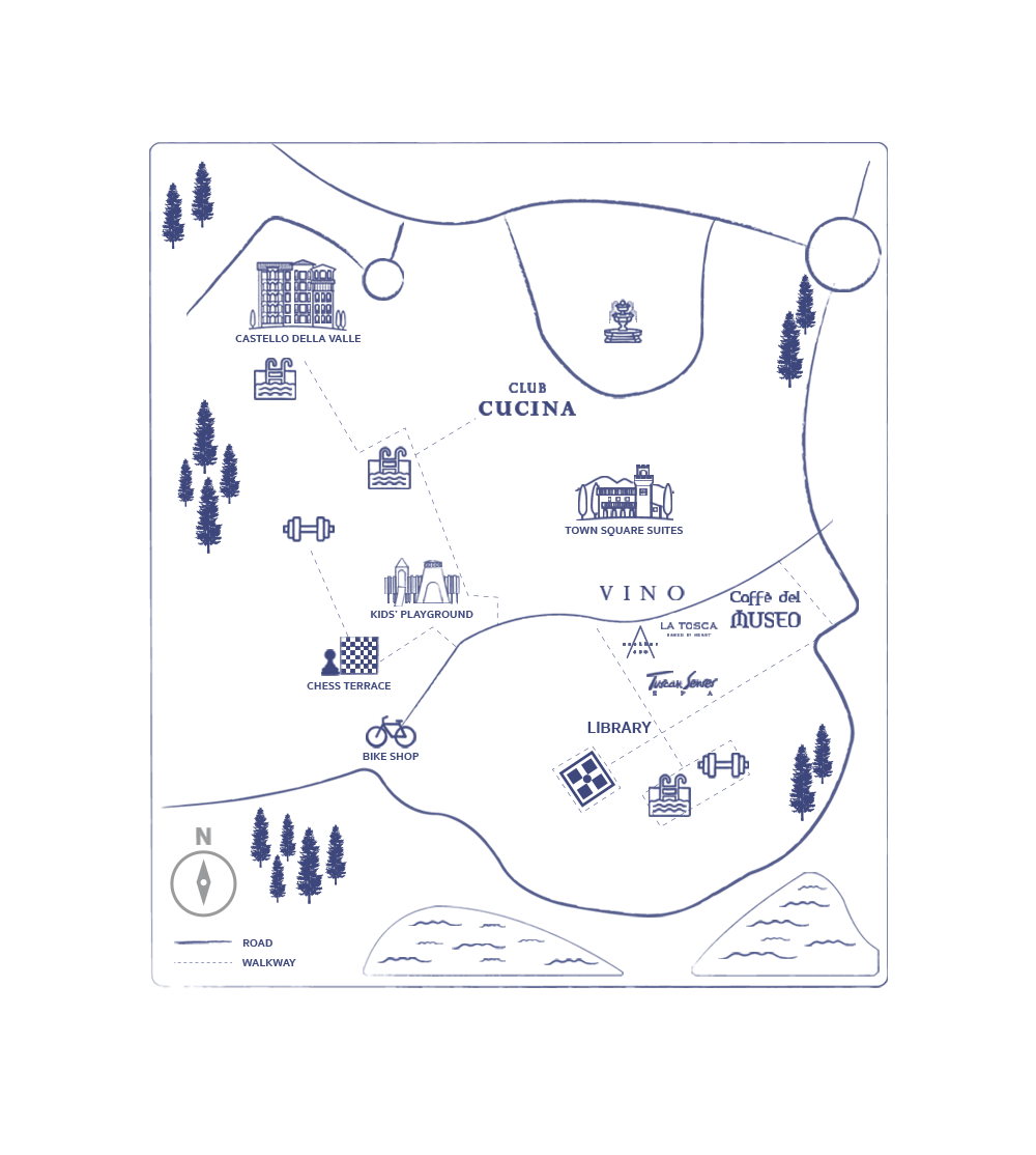 บรรยากาศใน Town Square หรือ Piazza ที่แปลว่าลานเล็กๆในภาษาอิตาลี เหมือนหลุดเข้ามาในเมืองทัศคานี ตัดขาดจากโลกภายนอกได้สนิท ถนนลาดยาวปูหิน อาคาหินทรายสีเหลืองและส้มอ่อน หลังคาเทอร์ราค็อตต้า ทำให้ฉันอดยิ้มออกมาไม่ได้ ... ชื่นชมสถาปนิกที่ออกแบบ และวิสัยทรรศ์เจ้าของโครงการ ที่แปลงร่างดินแดนผืนแผ่นนี้ให้เป็นลิตเติ้ลอิตาลีไปในอย่างไม่น่าเชื่อ