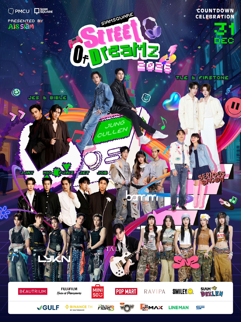 ค่ำคืนส่งท้ายปีที่จะทำให้ทุกฝันโลดแล่น เตรียมตัวสนุกสุดมันส์ไปกับ Lineup ศิลปินชั้นนำที่จะมา ร้อง-เล่น-เต้น จัดเต็มตลอดทั้งคืนกับ SIAM SQUARE STREET OF DREAMZ 2026 presented by AIS SIAM ที่สยามสแควร์ มาร่วมสร้างโมเมนต์สุดประทับใจ ต้อนรับปีใหม่ไปด้วยกันวันที่ 31 ธ.ค. 68 ตั้งแต่เวลา 18.00 น. เป็นต้นไป