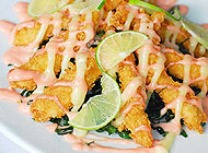 ส่วนเรื่องอาหารของที่นี่ แต่ละเมนูก็ครีเอทได้ใจจริงๆ ค่ะ อาทิ ไก่ซอสมะนาว (95 บาท) ไก่ชุบแป้งเกล็ดขนมปังทอดแบบเหลืองกรอบ ราดน้ำสลัดซอสมะนาว รสชาติหวานนิดๆ เปรี้ยวหน่อยๆ ทานเคียงกับใบคะน้าซอยทอดกรอบ หรือ แซลมอนแช่น้ำปลา (200 บาท) แซลมอนสไลด์ราดน้ำยำซีฟู้ดรสจัดจ้านตัดความเผ็ดร้อนด้วยใบสะระแหน่ กระเทียมและผักสดซอย