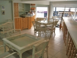 ภายในร้านตบแต่งด้วยโทนสีฟ้า ขาว ในบรรยากาศสบายๆ คุณสามารถเลือกดื่มเครื่องดื่มได้หลากหลายชนิด