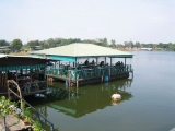 คุณจะได้ทานอาหารบนเรือนไม้ซึ่งสร้างอยู่บนบึงน้ำที่มีปลาหลากหลายชนิด