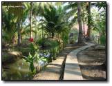 ภาพซ้าย : ภาพบริเวณทางเดินเข้า สองข้างทางเต็มไปด้วยต้นไม้ อากาศเย็นสดชื่นดีจังครับ
