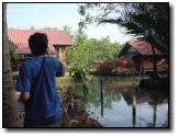 ภาพขวา : สังเกตดีๆ จะเห็นท่าน้ำเล็ก ตรงนี่เลยครับ ที่ตอนเช้าเราจะตื่นขึ้นมาใส่บาตรกัน |