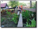 ภาพขวา : ฮ่าๆ ไม้กระดานแผ่นเดียว เดินข้ามคลอง สนุกดี ตอนเดินต้องเดินทีละคนนะครับ เพื่อนความปลอดภัย |
