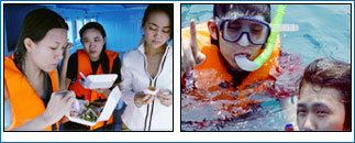 เปิ้ล โฮมสเตย์15 ก.พ. 52 (00:00 น.) พิมพ์แชร์เรื่องนี้แชร์เรื่องนี้LineTwitterFacebookคัดลอกลิงก์- กก + หลังจากใช้เวลาประมาณ 45 นาทีบนเรือเฟอร์รี่ก็มาถึงท่าเรือเกาะช้างเป็นการกลับมาเยือนเกาะช้างอีกครั้ง จุดหมายปลายทางที่เราจะไปคือหมู่บ้านชาวประมงที่อ่าวสลักเพชรซึ่งอยู่ทางตอนใต้ของเกาะช้าง ห่างจากท่าเรือเลี้ยวซ้ายไประยะทางประมาณ 24 กิโลเมตร ตลอดทางก็มีจุดชมทัศนียภาพริมทะเล สวนทุเรียน และน้ำตกธารมะยมให้ได้ชื่นชมกัน หมู่บ้านชาวประมงที่นี่ส่วนใหญ่ทำบ้านเป็นโฮมสเตย์เพื่อต้อนรับนักท่องเที่ยวได้เข้ามาพักและสัมผัสกับวิถีชีวิตความเป็นอยู่ของพวกเขา สมบัติของเปิ้ลก็เป็นหนึ่งในนั้น ด้วยบ้านพักที่กว้างขวางมีห้องมากมายและมีระเบียงให้พักผ่อน แม้จะไม่มีห้องแอร์ให้ความสะดวกสบายเหมือนรีสอร์ททั่วไปแต่ก็ไม่ทำให้การพักแรมเป็นอุปสรรค์ เพราะด้วยสถานที่ตั้งที่ปลูกอยู่ในทะเลลักษณะตัวบ้านที่เปิดโล่งรับลมทะเลที่พัดโชย เย็นสบายเท่านี้ก็เพียงพอแล้ว กิจกรรมของการท่องเที่ยวของโฮมสเตย์ที่บ้านสลักเพชรจะเริ่มตั้งแต่เช้าด้วยการรับประทานข้าวต้มก่อนจะออกเดินทางไปเที่ยวชมหมู่เกาะช้าง ซึ่งมีเกาะน้อยใหญ่กว่า 40 เกาะแต่ที่นิยมกันก็คือการไปดำน้ำดูปะการังและปลาสวยงาม ซึ่งจุดดำน้ำก็มีอาทิเช่นเกาะหวาย เกาะเทียน เกาะกระ เกาะกำปั่น หรือเกาะเหลายา ถ้าผู้ที่ไม่ชอบดำน้ำก็มีหาดทรายขาวให้ลงไปเดินเล่นได้ ก่อนที่จะกลับขึ้นมารับประทานอาหารกันบนเรือแล้วกลับสู่ที่พักในเวลาเย็น เมื่อเที่ยวดำน้ำดูปะการังมาแล้วในช่วงค่ำก็มีบริการอาหารเย็นภายใต้แสงดาวระยับและลมทะเลที่พัดเย็นสบาย กับเมนูอาหารทะเลรสเลิศทั้งปูนึง กุ้งเผา กระบอกราดพริก ยำรวมมิตรทะเล ต้มยำรวมมิตร และที่ขาดไม่ได้ไข่เจียว เรียกว่ากินกันอิ่มหนำสำราญเลยทีเดียว ซึ่งบรรยากาศแบบนี้เราคงหาไม่ได้อีกแล้วกับชีวิตคนเมืองเช่นเราๆ ส่วนในยามค่ำคืนที่นี่ค่อนข้างจะเงียบสงบเพราะชาวบ้านส่วนใหญ่จะออกไปทำประมงวางลอบวางอวน กิจกรรมในตอนกลางคืนที่นี่เขามีบริการพาไปไดหมึก-ตกหมึก อัตราค่าบริการอยู่ที่ 400 ต่อท่าน โดยจะออกตั้งแต่เวลา 19.00 - 23.00 น. หรือจะไปชมหิ่งห้อยในป่าชายเลนก็ได้เหมือนกันแถมสะดวกสบายกว่าที่อื่นด้วยเพราะสามารถเดินเท้าเข้าไปชมได้โดยไม่ต้องนั่งเรือ สำหรับค่าใช้จ่ายในการพักแรมที่สมบัติของเปิ้ลโฮมสเตย์นั้นจะมีบริการให้เลือกดังนี้ พัก 2 วัน 1 คืน รวมอาหาร 4 มื้อ พร้อมพาไปดำน้ำดูปะการัง ท่านละ 1700 บาท ถ้าไปตั้งแต่ 10 คนขึ้นไปเหลือท่านละ 1500 บาท พัก 3 วัน 2 คืน รวมอาหาร 6 มื