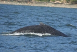 สิ่งที่สอง ก็คือ การได้ล่องเรือติดตามชมการใช้ชีวิต ปลาวาฬ ซึ่งถือได้ว่าเป็นสัตว์เลี้ยงลูกด้วยนมที่ใหญ่ที่สุดในโลก ซึ่ง ผมต้องเดินทางไปขึ้นเรือในท่าเรือที่ค่อนข้างห่างไกลจากที่เดิมมาก โดยไปขึ้นเรือเร็ว 2 ชั้น ซึ่งมีกระจกใสรอบเรือ ทำให้สามารถสังเกตเห็นการปรากฏตัวของปลาวาฬได้จากรอบลำเรือเลยครับ สภาพบนเรือค่อนข้างสะดวกสบาย เพราะจัดเป็นเรือภัตตาคารแบบง่ายๆ และมีอาหารอร่อยครับ ระหว่างเดินทางสามารถรับประทานอาหารเย็นได้เลย ระหว่างนั้นพอเรือเจอปลาวาฬก็หยุดดูได้ทันที ซึ่งการท่องเที่ยวเพื่อชมชีวิตสัตว์ป่าในต่างประเทศนี่ดีมากเลยครับ มีระบบจัดการท่องเที่ยวในเชิงนิเวศน์ ซึ่งคำนึงถึงการกระทบสิ่งแวดล้อมให้น้อยที่สุดและรักษาให้ยั่งยืน เพื่อที่จะได้ใช้ประโยชน์จากทรัพยากรธรรมชาติที่มีอยู่ได้อย่างตลอดไป เนื่องจากการเข้ามาของนักท่องเที่ยวในแต่ละวัน ซึ่งจะก่อให้เกิดความเครียด และส่งผลกระทบต่อความเป็นอยู่ของปลาวาฬ ทั้งในด้านพฤติกรรมการหากิน / อพยพ / แพร่พันธุ์ จึงมีการกำหนดเวลาในการชมของเรือแต่ละลำว่า จะใช้เวลาหลังจากเจอปลาวาฬไม่เกิน 30 นาที ทำการเดินเรือในแนวขนานกับการว่ายของปลาวาฬและต้องรักษาระยะห่างในแนวรัศมีประมาณ 100 เมตร (หากข้อมูลระยะทางคลาดเคลื่อนต้องขออภัยด้วยครับ) และต้องทำการดับเครื่องทันทีหากปลาวาฬปรากฏตัวหรือเคลื่อนที่เข้าใกล้กว่าระยะที่กำหนด ในที่สุด เราก็ได้เจอปลาวาฬหลังค่อม (Ham-Back Whale) เป็นตัวแรกเลยครับ ในระยะที่ใกล้ที่สุด ซึ่งจะปรากฏตัวโดยการพ่นน้ำขึ้นเป็นฝอยน้ำสูง และดำผุดขึ้นมาประมาณ 3- 4 ครั้ง โดยเว้นระยะเวลาแต่ละครั้งประมาณ 2-3 นาทีครับ ก่อนที่จะดำลงครั้งสุดท้าย (Terminal Drive ) โดยจะมีลักษณะพิเศษที่โก่งหลังขึ้นโค้งสูงเป็นพิเศษ และโผล่ครีบหางสูงขึ้นมา อันเป็นสัญลักษณ์ว่า จะทำการดำลงลึกแล้วในครั้งนี้ จากนั้นจึงอาจจะโผล่อีกตำแหน่งที่ต่างกัน จากการโผล่ครีบหางให้เห็นในครั้งสุดท้ายนี้ ทำให้เราสามารถบอกลักษณะเด่นของปลาวาฬแต่ละตัวได้เลยครับ โดยที่ท้ายเรือจะมีแผนผังภาพครีบหางและชื่อของปลาวาฬนั้นๆครับ เจ้าตัวที่โผล่มาให้เห็นนี้ ยังโผล่มาให้เห็นในอีก 4 ครั้งในตำแหน่งที่ไม่ซ้ำกัน ซึ่งต้องใช้ความร่วมมือของลูกเรือทุกคนและกัปตันในการช่วยติดตามปลาวาฬ ซึ่งระยะทางก็ค่อยๆห่างไปเรื่อยๆครับ ไม่น่าเชื่อว่า ขนาดเราเป็นเรือเร็วมาก สัตว์โลกขนาดใหญ่ตัวนี้กลับเคลื่อนที่ด้วยความเร็วกว่ามากจริงๆ ทั้งๆที่ตอนโผล่ตัวจะดูเคลื่อนไหวไม่ค่อยเร็วมาก จนถึงระยะเวลาที่กำหนด เราจึ
