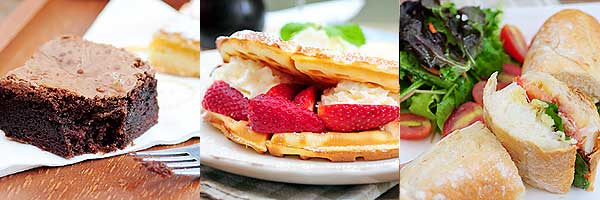ใครท้องว่างแนะนำแซนด์วิชอร่อยๆ อย่าง Parma Ham with Rocket andTomato Sandwich (240 บาท) ขนมปังฝรั่งเศสอบทำใหม่ๆ ไส้พาร์มาแฮมมะเขือเทศ ผักร็อกเก็ตสด, Cuban Sandwich (240 บาท) อร่อยแน่นเต็มคำกับเนื้อหมูย่าง สวิสชีส แฮม และแตงกวาดอง นอกจากนี้ทางร้านมีเซตอาหารกลางวันประเภทพาสต้า สลัด ซุป ไว้บริการด้วยค่ะ