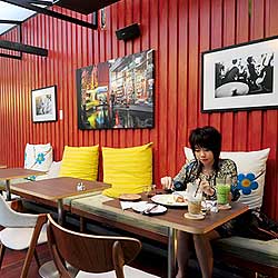 ร้านกาแฟเก๋ๆ แห่งนี้ เปรียบเสมือนโอเอซิสอันแสนร่มรื่นกลางซอยสุขุมวิท 24 ตัวร้านเป็นเรือนกระจกใส เห็นแนวต้นไม้สีเขียวด้านนอก มีต้นไม้ใหญ่อายุหลายสิบปีแผ่กิ่งก้านให้ร่มเงา
