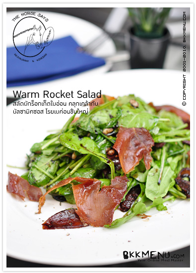 ส่วนเรื่องอาหาร ที่นี่บริการเสิร์ฟหลากเมนูสไตล์ Comfort Food ปรุงแบบ Home Cuisine เน้นรสชาติแบบต้นตำรับแท้ๆ ทั้งอเมริกันและยุโรป ด้วยฝีีมือของเชฟจอห์นนี่ อาทิ Warm Rocket Salad (280 บาท) สลัดผักร็อกเก็ตใบอ่อน คลุกเคล้ากับบัลซามิคซอส โรยเบค่อนชิ้นใหญ่