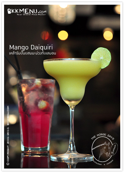 หรือเติมดีกรีความรื่นรมย์ให้ค่ำคืนนี้ด้วยค็อกเทลสูตรพิเศษ ไม่ว่าจะเป็น Berries Party (170 บาท) แค่จิบเดียวก็ได้ครบทั้งรสเปรี้ยว หวาน ซ่า, หรือเป็น Mango Daiquiri (250 บาท) เหล้ารัมปั่นผสมมะม่วงกับเลมอนเจือกลิ่นหอมอันมีเอกลักษณ์