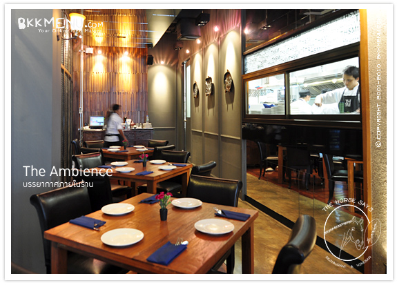 The Horse Says Moooo ร้านอาหารน้องใหม่ที่เพิ่งเปิดไม่นาน แต่กำลังถูกกล่าวขานในกลุ่มของหนุ่มสาวชาวกรุง ผู้มีไลฟ์สไตล์ในเรื่องกินเที่ยว ด้วยการตกแต่งบรรยากาศได้อย่างเก๋ชิคไม่แพ้ใคร กับแนว Modern ผสานกลิ่นอาย Vintage Retro ภายในแบ่งเป็นโซน Casual Dining และครัวเปิดให้มองเห็นลีลาของเชฟปรุงอาหารกันเพลินๆ หรือเลือกนั่งชิลล์รับลมยามเย็นตรงเทอเรซด้านหน้า พอค่ำมืดลงหน่อย แนะนำให้ย้ายไปนั่งดริงค์ได้บนชั้น 2 ที่เปิดเป็น Wine Bar ดูรีแลกซ์ด้วยโซฟาเบาะนุ่ม และโดดเด่นด้วยเคาน์เตอร์บาร์เปลี่ยนสลับสีได้