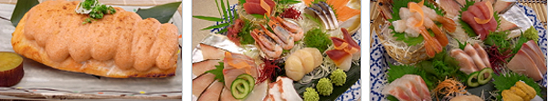 ประเภทอาหารที่ให้บริการ : ซาชิมิ, ซูชิ, อาหารปิ้งย่าง, อาหารญี่ป่นหลากหลายประเภท, และนอกจากนี้ยังมีอาหารชุดกลางวันหลากหลายเมนูให้เลือก