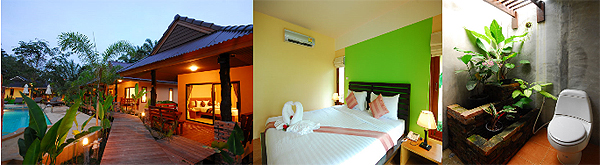 สุดท้ายเป็นแบบ "GardenView" จากชื่อคงเป็นการการันตีได้นะคะ ว่าห้องสไตล์นี้ต้องเป็นห้องที่รายล้อมไปด้วยธรรมชาติ สวนสวยๆ ต้นไม้เขียวขจี กับอากาศที่บริสุทธิ์ จากระเบียงของห้อง คุณสามารถออกไปสูดอากาศที่สดชื่นได้อย่างเต็มปอดค่ะ คงจะเหมาะไม่น้อยกับคนที่รักความสงบ และความเป็นธรรมชาติค่ะ เพราะบรรยากาศที่อยู่รายล้อมตัวห้อง สวยและเป็นธรรมชาติจริงๆ ค่ะ ห้องแบบ Garden View มีเพีงเตียงคู่เท่านั้นนะคะ