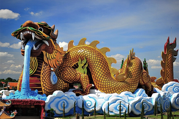 พิพิธภัณฑ์ลูกหลานพันธุ์มังกร (อุทยานมังกรสวรรค์) สร้างขึ้นจากความคิด นายบรรหาร ศิลปอาชา ขณะดำรงตำแหน่งนายกรัฐมนตรีคนที่ 21 ของประเทศไทย โดยได้เริ่มออกแบบและจัดทำพิพิธภัณฑ์ลูกหลานพันธุ์มังกรขึ้น บริเวณศาลเจ้าพ่อหลักเมืองจังหวัดสุพรรณบุรี เพื่อนำเสนอเรื่องราวความเป็นมาของชาวจีนในประเทศไทย ตลอดจนประวัติศาสตร์และอารยธรรมจีน เพื่อเป็นอนุสรณ์การเจริญสัมพันธ์ทางการทูตไทย - จีน ครบ 20 ปีใน พ.ศ. 2539 ลำตัวมังกรภายนอกออกแบบอย่างถูกต้องตามลักษณะความเชื่อของคนจีนแต่โบราณ ภายใต้ตัวมังกรเป็นที่ตั้งของ "พิพิธภัณฑ์ลูกหลานพันธุ์มังกร" ซึ่งห้องจัดแสดงเรื่องราวด้วยเทคนิคนำเสนอทันสมัยจำนวน 20 ห้อง