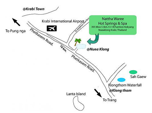 ณัฐฐาวารี น้ำพุร้อน รีสอร์ท และสปา ตั้งอยู่ริมถนเพชรเกษม ระหว่าง กม.ที่ 13-14 (กม.ที่ 990 กระบี่-ตรัง) บ้านบางผึ้ง ตำบลโคกยาง อำเภอเหนือคลอง จังหวัดกระบี่ ห่างจากสนามบินนานาชาติกระบี่ 16 กม. ห่างจากอำเภอเมืองกระบี่ประมาณ 26 กม. ไปมาสะดวกเป็นแหล่งท่องเที่ยวเชิงอนุรักษ์ธรรมชาติ และรักษาสุขภาพแห่งใหม่ของจังหวัดกระบี่ ตามแนวความคิดที่ว่า